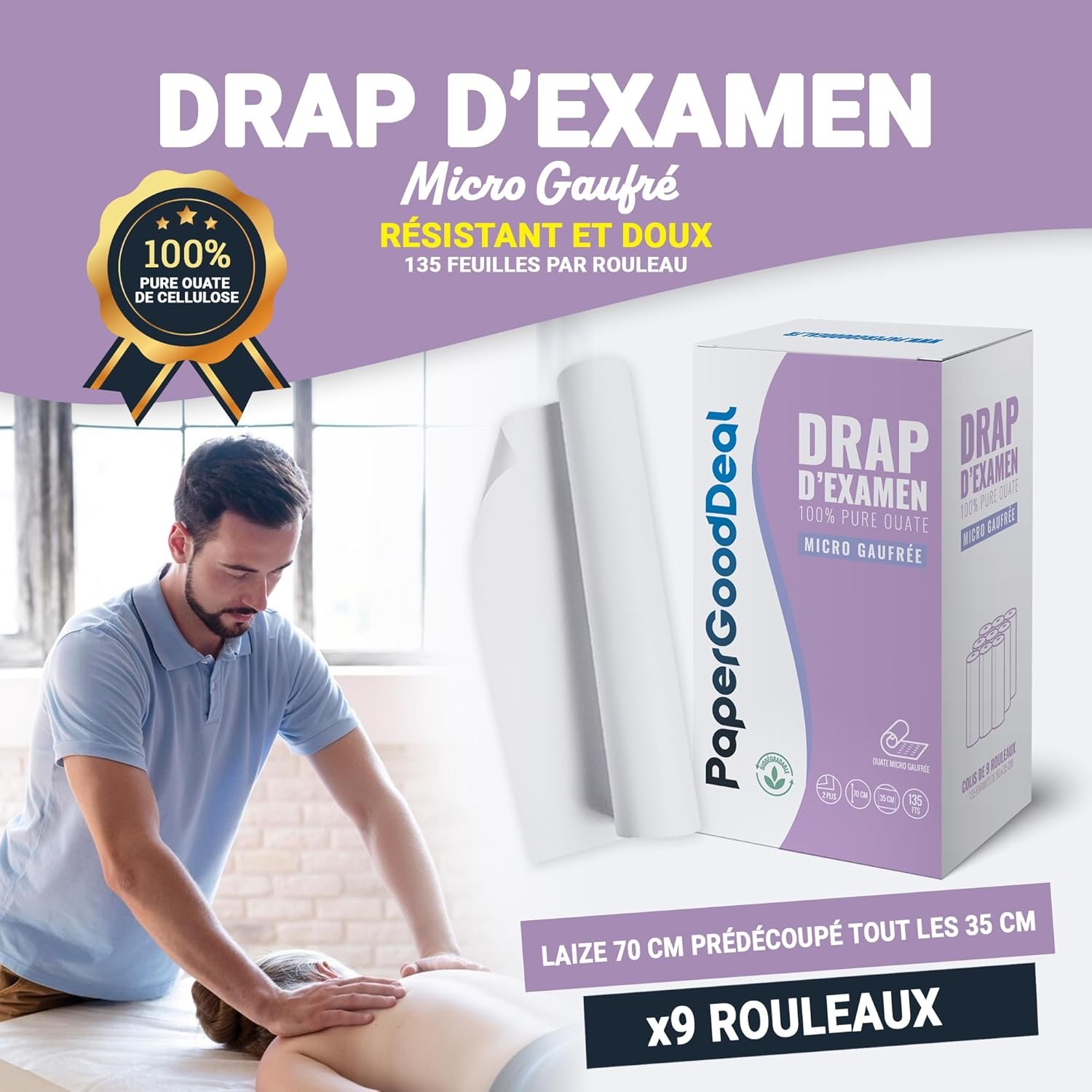 9 rouleaux grande largeur 70cmx35cm drap d’examen micro gaufré 100% pure ouate 135 fts drap hygienique medical-esthetique Qualité proféssionnelle